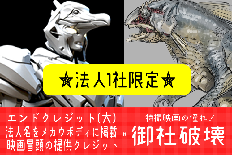 【★法人1社限定★】オープニング時に提供クレジット掲載、エンドクレジット(大サイズ)掲載、法人名を「メカウ」ボディに掲載、「御社ビル」を破壊