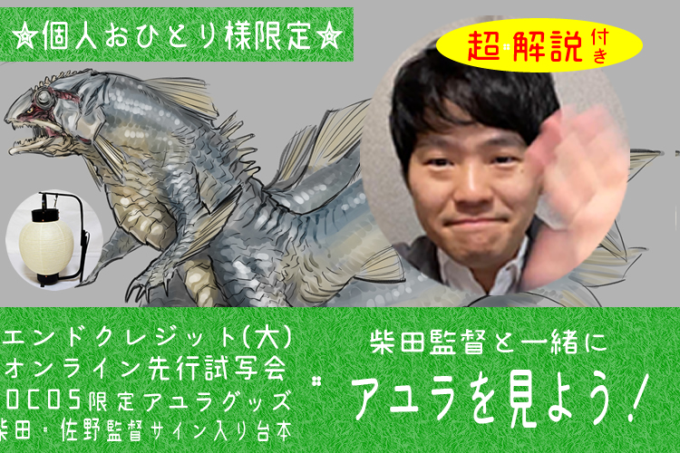 【★個人おひとり様限定★】エンドクレジット(大サイズ)掲載&オンライン先行上映会参加先行上映会&OCOS支援限定のアユラグッズ&柴田&佐野監督サイン入り台本&柴田監督と一緒にアユラをシアターで見れる