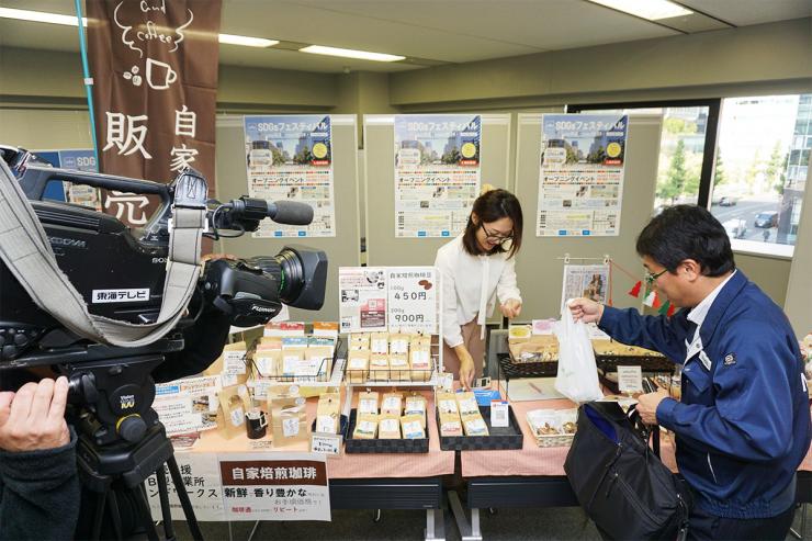 テイクアウトコーヒーカップに企業名シール 1万杯+ゴールドスポンサーとして店内掲示看板