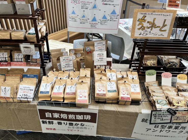 就労継続支援B型事業所アンドワークスにて、and coffeeのブランド名にて1つずつ丁寧に製品化しております。